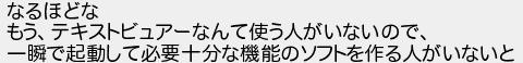 なるほどな もうテキストビュアーなんて使う人がいないので 一瞬で起動して必要十分な機能のソフトを作る人がいないと