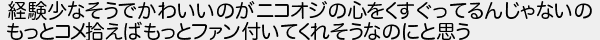 経験少なそうでかわいいのがニコオジの心をくすぐってるんじゃないの もっとコメ拾えばもっとファン付いてくれそうなのにと思う