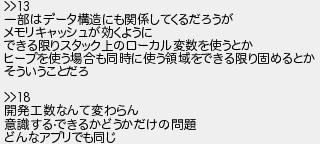 一部はデータ構造にも関係してくるだろうが メモリキャッシュが効くように できる限りスタック上のローカル変数を使うとか ヒープを使う場合も同時に使う領域をできる限り固めるとか そういうことだろ 開発工数なんて変わらん 意識するできるかどうかだけの問題 どんなアプリでも同じ