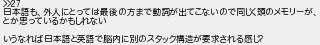 日本語も外人にとっては最後の方まで動詞が出てこないので同じく頭のメモリーが とか思っているかもしれない いうなれば日本語と英語で脳内に別のスタック構造が要求される感じ