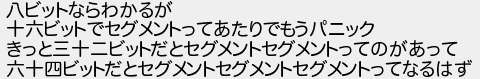 八ビットならわかるが 十六ビットでセグメントってあたりでもうパニック きっと三十二ビットだとセグメントセグメントってのがあって 六十四ビットだとセグメントセグメントセグメントってなるはず