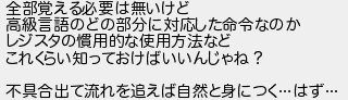 全部覚える必要は無いけど 高級言語のどの部分に対応した命令なのか レジスタの慣用的な使用方法など これくらい知っておけばいいんじゃね? 不具合出て流れを追えば自然と身につくはず
