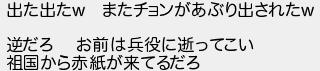出た出た またチョンがあぶり出された 逆だろ お前は兵役に逝ってこい 祖国から赤紙が来てるだろ