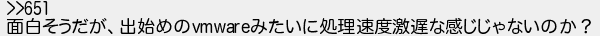 653: (スフッ Sd62-HK0z) [sage] 2017/11/06(月) 12:54:23.31 ID:QtI9tNPWd >>651 面白そうだが、出始めのvmwareみたいに処理速度激遅な感じじゃないのか? http://egg.5ch.io/test/read.cgi/android/1504890971/653