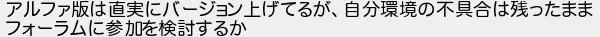 アルファ版は直実にバージョン上げてるが自分環境の不具合は残ったまま フォーラムに参加を検討するか