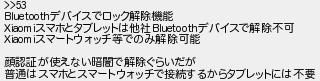 55: (ワッチョイ ff62-IMs7) [sage] 2022/09/21(水) 21:10:00.77 ID:65Mo/F4J0 >>53 Bluetoothデバイスでロック解除機能 Xiaomiスマホとタブレットは他社Bluetoothデバイスで解除不可 Xiaomiスマートウォッチ等でのみ解除可能 顔認証が使えない暗闇で解除ぐらいだが 普通はスマホとスマートウォッチで接続するからタブレットには不要 http://egg.5ch.io/test/read.cgi/android/1663291810/55
