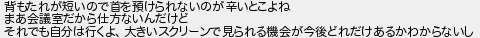 背もたれが短いので首を預けられないのが辛いとこよね まあ会議室だから仕方ないんだけど それでも自分は行くよ大きいスクリーンで見られる機会が今後どれだけあるかわからないし