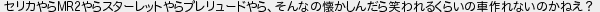 セリカやらやらスターレットやらプレリュードやらそんなの懐かしんだら笑われるくらいの車作れないのかねえ?