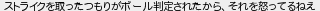 ストライクを取ったつもりがボール判定されたからそれを怒ってるねえ