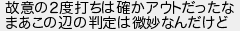 故意の2度打ちは確かアウトだったな まあこの辺の判定は微妙なんだけど