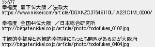 幸福度 最下位大阪 法政大 幸福度 全国位大阪 日本総合研究所 主観的幸福度と客観的幸福度にもっとも開きがあるのが大阪府