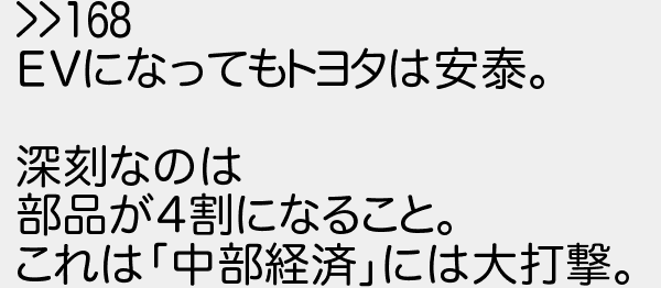 になってもトヨタは安泰 深刻なのは 部品が4割になること これは中部経済には大打撃