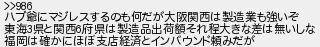 992: (光) [sage] 2021/08/23(月) 12:57:35 ID:SMtiA/SJ >>986 ハブ爺にマジレスするのも何だが大阪関西は製造業も強いぞ 東海3県と関西6府県は製造品出荷額それ程大きな差は無いしな 福岡は確かにほぼ支店経済とインバウンド頼みだが http://egg.5ch.io/test/read.cgi/develop/1629366794/992