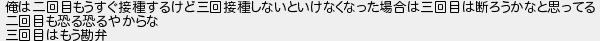 俺は二回目もうすぐ接種するけど三回接種しないといけなくなった場合は三回目は断ろうかなと思ってる 二回目も恐る恐るやからな 三回目はもう勘弁