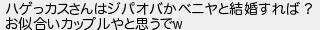 ハゲっカスさんはジパオバかベニヤと結婚すれば? お似合いカップルやと思うで