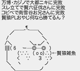 万博カジノで大都ニキに完敗 スレ立てで六征伐さんに完敗 コピペで南雪谷お兄さんに完敗 猿おやじ何なら勝てるん? ー 猿雑魚 3 ノ ノ