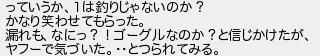 っていうか1は釣りじゃないのか? かなり笑わせてもらった 漏れもなにっ?!ゴーグルなのか?と信じかけたが ヤフーで気づいたとつられてみる