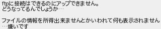 に接続はできるのにアップできません どうなってるんでしょうか ファイルの情報を所得出来ませんとかいわれて何も表示されません 嫌いです