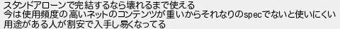 スタンドアローンで完結するなら壊れるまで使える 今は使用頻度の高いネットのコンテンツが重いからそれなりのでないと使いにくい 用途がある人が割安で入手し易くなってる