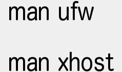 653: [sage] 2019/10/18(金) 00:55:23.52 ID:k7gNWHud man ufw man xhost http://mao.5ch.net/test/read.cgi/linux/1565609547/653