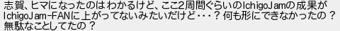 志賀ヒマになったのはわかるけどここ2周間ぐらいのの成果が に上がってないみたいだけど?何も形にできなかったの? 無駄なことしてたの?