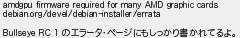 653: [sage] 2021/04/25(日) 18:44:19 ID:7VwEVpOx amdgpu firmware required for many AMD graphic cards debian.org/devel/debian-installer/errata Bullseye RC 1 のエラータ・ページにもしっかり書かれてるよ。 http://mao.5ch.net/test/read.cgi/linux/1606619383/653