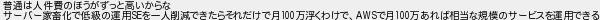 普通は人件費のほうがずっと高いからな サーバー家畜化で低級の運用を一人削減できたらそれだけで月万浮くわけでで月万あれば相当な規模のサービスを運用できる