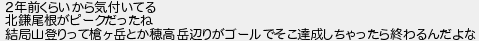 2年前くらいから気付いてる 北鎌尾根がピークだったね 結局山登りって槍ヶ岳とか穂高岳辺りがゴールでそこ達成しちゃったら終わるんだよな