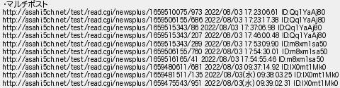 653: 削除花果 ★ [sage] 2022/08/04(木) 00:05:40.79 ID:CAP_USER ・マルチポスト http://asahi.5ch.net/test/read.cgi/newsplus/1659510075/973 2022/08/03 17:23:06.61 ID:Qq1YaAj80 http://asahi.5ch.net/test/read.cgi/newsplus/1659506155/686 2022/08/03 17:23:17.38 ID:Qq1YaAj80 http://asahi.5ch.net/test/read.cgi/newsplus/1659515343/86 2022/08/03 17:37:06.98 ID:Qq1YaAj80 http://asahi.5ch.net/test/read.cgi/newsplus/1659515343/207 2022/08/03 17:46:00.48 ID:Qq1YaAj80 http://asahi.5ch.net/test/read.cgi/newsplus/1659515343/289 2022/08/03 17:53:09.90 ID:m8xm1sa50 http://asahi.5ch.net/test/read.cgi/newsplus/1659506155/760 2022/08/03 17:54:30.01 ID:m8xm1sa50 http://asahi.5ch.net/test/read.cgi/newsplus/1659516165/41 2022/08/03 17:54:55.46 ID:m8xm1sa50 http://asahi.5ch.net/test/read.cgi/newsplus/1659480611/681 2022/08/03 09:37:14.92 ID:IX0mt1Mk0 http://asahi.5ch.net/test/read.cgi/newsplus/1659481511/135 2022/08/03(水) 09:38:03.25 ID:IX0mt1Mk0 http://asahi.5ch.net/test/read.cgi/newsplus/1659475543/951 2022/08/03(水) 09:39:02.31 ID:IX0mt1Mk0 http://agree.5ch.io/test/read.cgi/sec2chd/1658452250/653