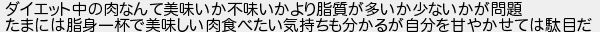 ダイエット中の肉なんて美味いか不味いかより脂質が多いか少ないかが問題 たまには脂身一杯で美味しい肉食べたい気持ちも分かるが自分を甘やかせては駄目だ