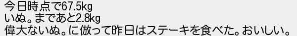 338: (スププ Sdaa-WfrR) [sage] 2018/12/14(金) 18:10:44.58 ID:gNrs0v4Bd 今日時点で67.5kg いぬ。まであと2.8kg 偉大ないぬ。に倣って昨日はステーキを食べた。おいしい。 http://rio2016.5ch.io/test/read.cgi/shapeup/1543551721/338