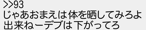 じゃあおまえは体を晒してみろよ 出来ねーデブは下がってろ
