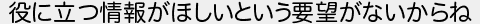 役に立つ情報がほしいという要望がないからね