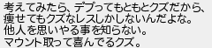 考えてみたらデブってもともとクズだから 痩せてもクズなレスしかしないんだよな 他人を思いやる事を知らない マウント取って喜んでるクズ