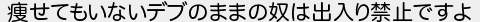 痩せてもいないデブのままの奴は出入り禁止ですよ