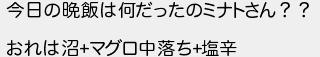 今日の晩飯は何だったのミナトさん?? おれは沼マグロ中落ち塩辛
