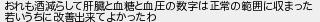 おれも酒減らして肝臓と血糖と血圧の数字は正常の範囲に収まった 若いうちに改善出来てよかったわ