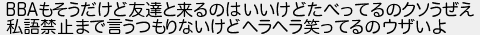 599: [] 2024/04/16(火) 15:37:41.36 ID:zxyr7NTX BBAもそうだけど友達と来るのはいいけどたべってるのクソうぜえ 私語禁止まで言うつもりないけどヘラヘラ笑ってるのウザいよ http://rio2016.5ch.io/test/read.cgi/shapeup/1710691607/599