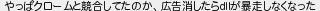 809: [sage] 2018/04/07(土) 19:51:38.17 ID:7R0LDrmV0 やっぱクロームと競合してたのか、広告消したらdllが暴走しなくなった http://egg.5ch.io/test/read.cgi/software/1521284142/809
