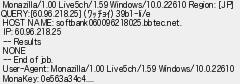 653: [sage] 2022/09/09(金) 05:49:00.42 ID:CxbwOpKv0 Monazilla/1.00 Live5ch/1.59 Windows/10.0.22610 Region: [JP] QUERY:[60.96.218.25] (ワッチョイ) 39b1-Ii/e HOST NAME: softbank060096218025.bbtec.net. IP: 60.96.218.25 -- Results NONE -- End of job. User-Agent: Monazilla/1.00 Live5ch/1.59 Windows/10.0.22610 MonaKey: 0e563a34c4.... http://egg.5ch.net/test/read.cgi/software/1661602781/653