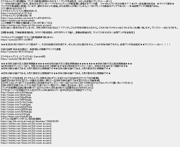 653: 名無しさん@お腹いっぱい。 (エムゾネWW FFca-xdzb [49.106.188.94]) [] 2019/06/21(金) 16:25:52.08 ID:bv+4f1r/F 【ウナちゃんマン配信開始、アンチの通報は無駄におわる!!アンチ完全敗走、ふわっち逆転にマンスリー一位へ】 〜〜珍味の絆は偉大である、革命はおきている〜〜ウナちゃんマンvs不動産屋に通報するアンチ編 ウナちゃんマン氏がお薬か??★ミラー完全養分敗走★ ★サックス革命★ アンチが不動産屋に通報しているが、意味はなかった模様。また佐野さんが勝ってしまう。いつまでたっても無能なアンチであった・・・本当佐野アンチは無能である。 クスリ屋はじめたのか?? 【ウナちゃんマン】 クスリ屋始めました https://youtu.be/gZvFCf1_KxA 【ウナちゃんマン】大原の若い衆 https://www.youtube.com/watch?v=yiPPdX95YXo https://twitter.com/uranansakaba ここの動画で大原組の構成員ってはっきり言ってるな https://twitter.com/5chan_nel (5ch newer account) まさに美しい革命がおきてしまった、珍味の財力なめるなよ??アンチ。これが珍味の絆なんだから。これからもウナちゃんをどうかよろしくお願い致します。マンスリー一位になります。 【超緊急速報、不動産屋通報失敗、カラオケ配信革命、40万円サックス購入、演奏会開催決定、サックスうますぎる!佐野アンチ完全敗走】 ウナちゃんマン【佐脳サスペンス劇場】騒音狂乱逆ギレ https://youtu.be/0PI7-xSO8FM ★★本日は6月21日はサックス革命デー、今日の目標は3000発です、ばんばん花火飛びますよ、これが珍味の絆ですから、佐野アンチ完全敗走★★マンスリー一位へ!!!! 【加川】佐野 退去命令間近! 楽器禁止の部屋でサックス演奏 https://youtu.be/2W1CCKsGusU 【ウナちゃんマン】 ノンフィクション 【season68】 https://youtu.be/XjBJIKX7AyQ ★★★珍味の絆大花火革命祭開催★★★★★★珍味の絆大花火革命祭開催★★★★★★★★★珍味の絆大花火革命祭開催★★★ ★6月は絶対マンスリー1位へ、珍味の力を合わせて頑張ります★★6月は絶対マンスリー1位へ、珍味の力を合わせて頑張ります★ ★珍味の絆は偉大である、6月大革命花火祭開催です★★珍味の絆は偉大である、6月大革命花火祭開催です★ ★珍味の絆は偉大である、6月大革命花火祭開催です★★珍味の絆は偉大である、6月大革命花火祭開催です★ 【佐野】【アンチ】【実態】 【ウナちゃんマン】【革命はおきている】【ひらとり】【ねぎま】【サックス】【お薬屋】 【嫉妬】【まぜよるがな】【ミラーは養分】【出会い厨ミラー】【珍味の絆は偉大である】【びびたんは虚言癖】 【びびたん】【レッド】【ドブズ】【佐野さん余命宣告】【マンスリー1位へ】【ひらとりさんは大口珍味】【ひらとりさんサックス買い取ってください】 【珍味の財力】【暇つぶしチャット枠】【TS見てない人用】【ミラーは囲い】【なおみー】【チームキル】 【アンチは精神病】【静止画放置ミラー】【ひらとりさんはお金持ち大口】【国吉】【立川のFおじさん】 【プラド】【ベンツ】【白猫びびたん】【びびたんはお金持ちミラー】【きも兄】【立川地獄】【サックス】 http://i.imgur.com/eCKFm6g.jpg http://i.imgur.com/t4b2iLU.jpg http://i.imgur.com/OSgulEb.jpg http://i.imgur.com/7kRK9es.jpg http://i.imgur.com/Sx5cmVw.jpg http://i.imgur.com/YvpIuGj.jpg http://i.imgur.com/jmd2yMX.jpg http://i.imgur.com/yD40GOr.jpg http://i.imgur.com/L00Xbde.jpg http://i.imgur.com/uuZrhit.jpg https://imgur.com/Uomht87.jpg 【オワコン】佐野アンチIPスレ590【美顔器】 https://egg.5ch.net/test/read.cgi/streaming/1560434539/ https://twitter.com/5chan_nel (5ch newer account) https://twitter.com/5chan_nel (5ch newer account) https://twitter.com/5chan_nel (5ch newer account) https://twitter.com/5chan_nel (5ch newer account) https://twitter.com/5chan_nel (5ch newer account) https://twitter.com/5chan_nel (5ch newer account) https://twitter.com/5chan_nel (5ch newer account) https://twitter.com/5chan_nel (5ch newer account) https://twitter.com/5chan_nel (5ch newer account) http://egg.5ch.io/test/read.cgi/streaming/1560434539/653