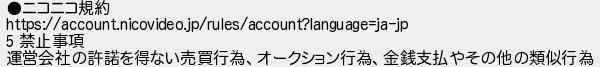 ニコニコ規約 禁止事項 運営会社の許諾を得ない売買行為オークション行為金銭支払やその他の類似行為