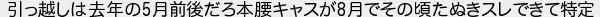 引っ越しは去年の月前後だろ本腰キャスが月でその頃たぬきスレできて特定