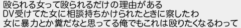 殴られる女って殴られるだけの理由がある 受けてた女に相談持ちかけられたときに察したわ 女に暴力とか糞だなと思ってる俺でもこれは殴りたくなるわって