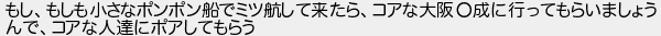 もしもしも小さなポンポン船でミツ航して来たらコアな大阪成に行ってもらいましょう んでコアな人達にポアしてもらう