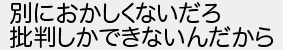 別におかしくないだろ 批判しかできないんだから