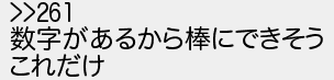 265: [sage] 2021/09/22(水) 09:37:13.66 >>261 数字があるから棒にできそう これだけ http://egg.5ch.io/test/read.cgi/streaming/1632247421/265