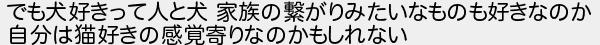 でも犬好きって人と犬 家族の繋がりみたいなものも好きなのか 自分は猫好きの感覚寄りなのかもしれない