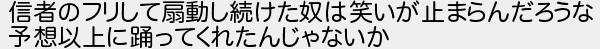 信者のフリして扇動し続けた奴は笑いが止まらんだろうな 予想以上に踊ってくれたんじゃないか