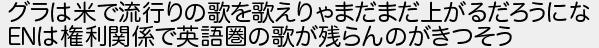 グラは米で流行りの歌を歌えりゃまだまだ上がるだろうにな は権利関係で英語圏の歌が残らんのがきつそう